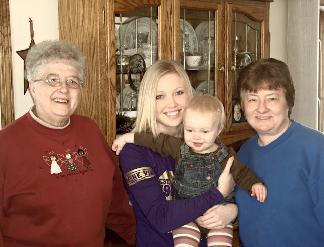 | Four Generations Beatrice Burtzel (Great Grandma), Andrea (Guetter) Iverson (Mom), Aubrielle Iverson (Daughter), and Bonni (Burtzel) Guetter (Grandma) |